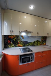 Кухня в пластике, столешница камень, стеновая фотопечать, отбойник: алюминий, р-р: 2380. Цена указана без фурнитуры, на стоимость также влияет выбранный материал. Полностью укомплектовываем кухню всей необходимой фурнитурой и техникой.